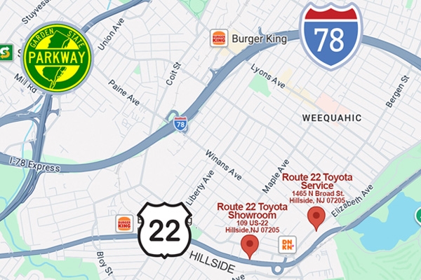 In search of a quality vehicle here in Hillside, NJ or throughout the Newark, NJ area? You won't find a better selection than the one we have waiting for you here at Route 22 Toyota. We're proud to welcome drivers from Union, Irvington, Elizabeth, and all across the region so that we can give them everything they need for their drive.