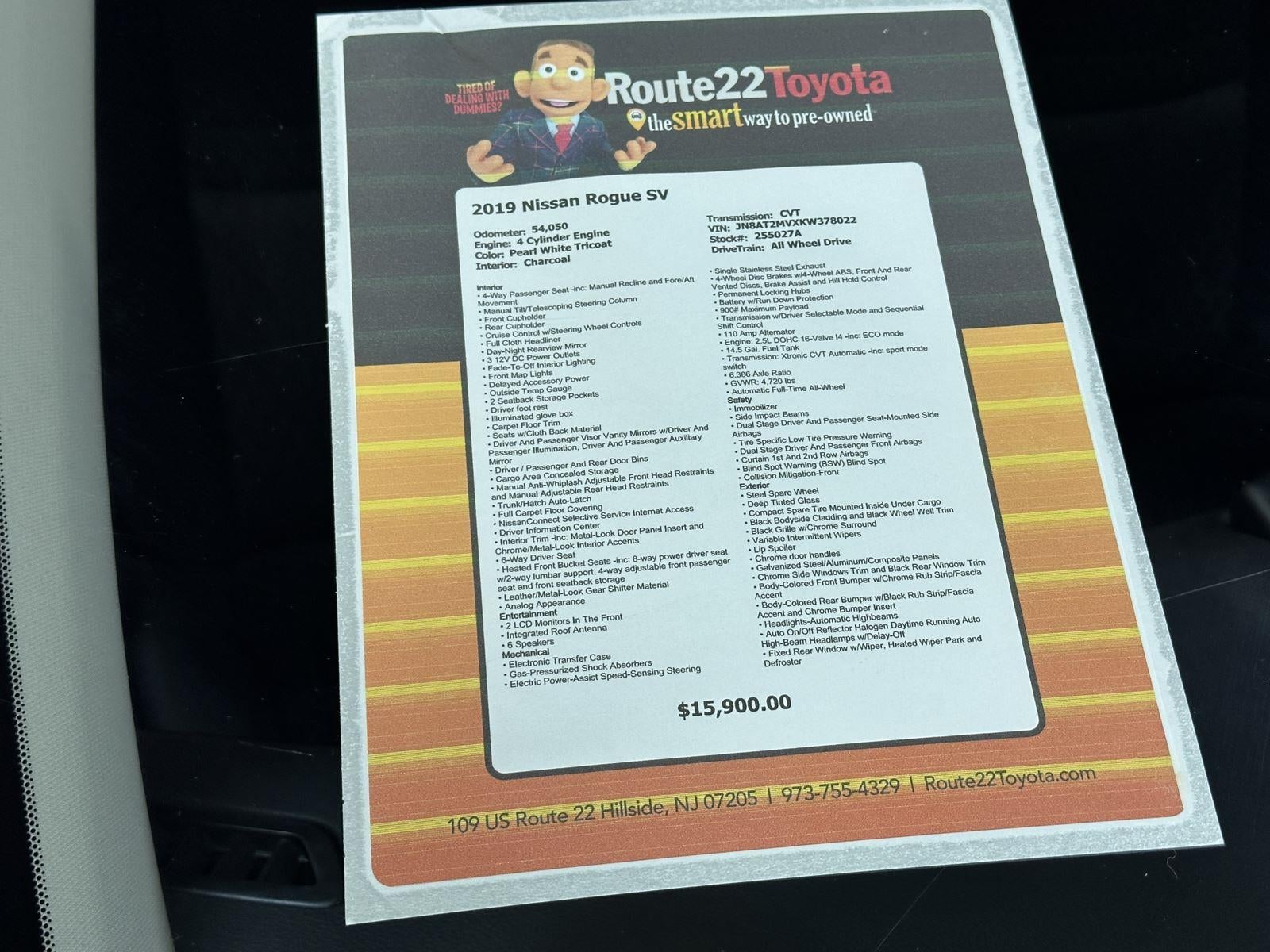 Our Pearl White Tricoat 2019 Nissan Rogue SV has 54,050 miles with Charcoal interior color. Stock Number KW378022