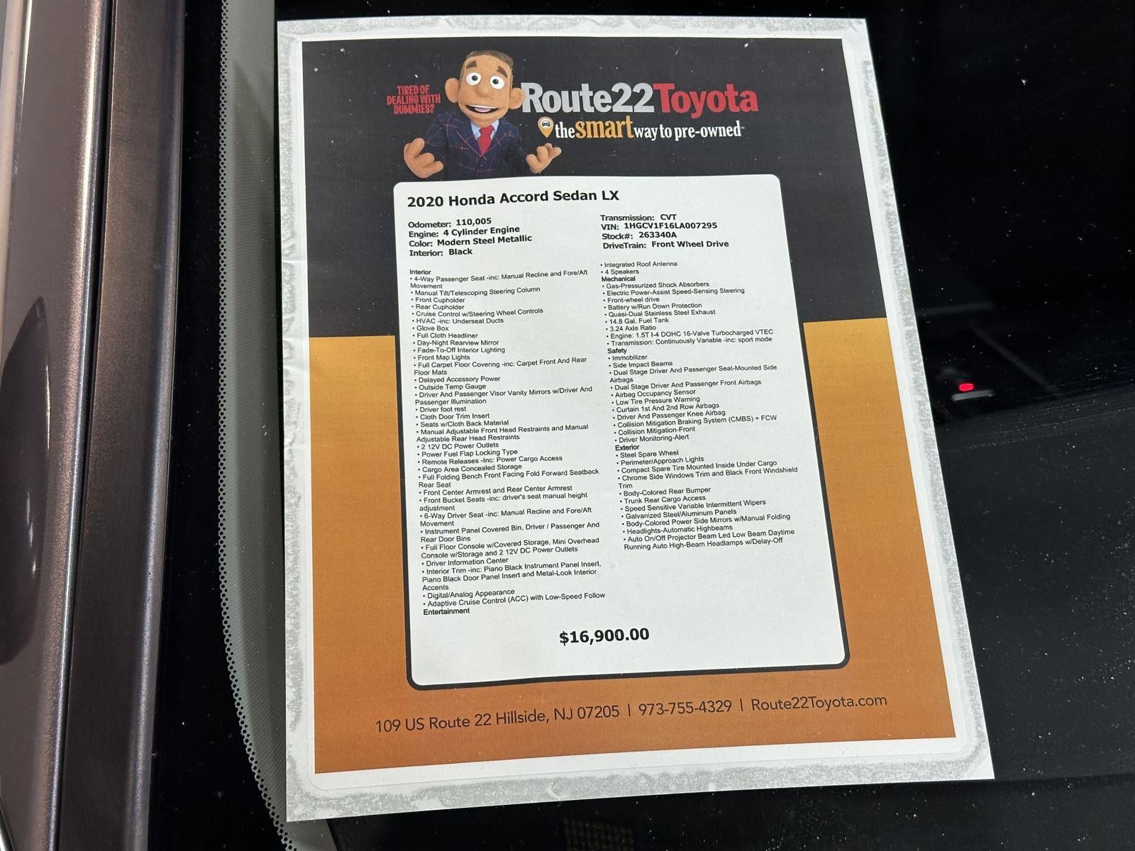 Our Modern Steel Metallic 2020 Honda Accord Sedan LX has 110,005 miles with Black interior color. Stock Number 263340A