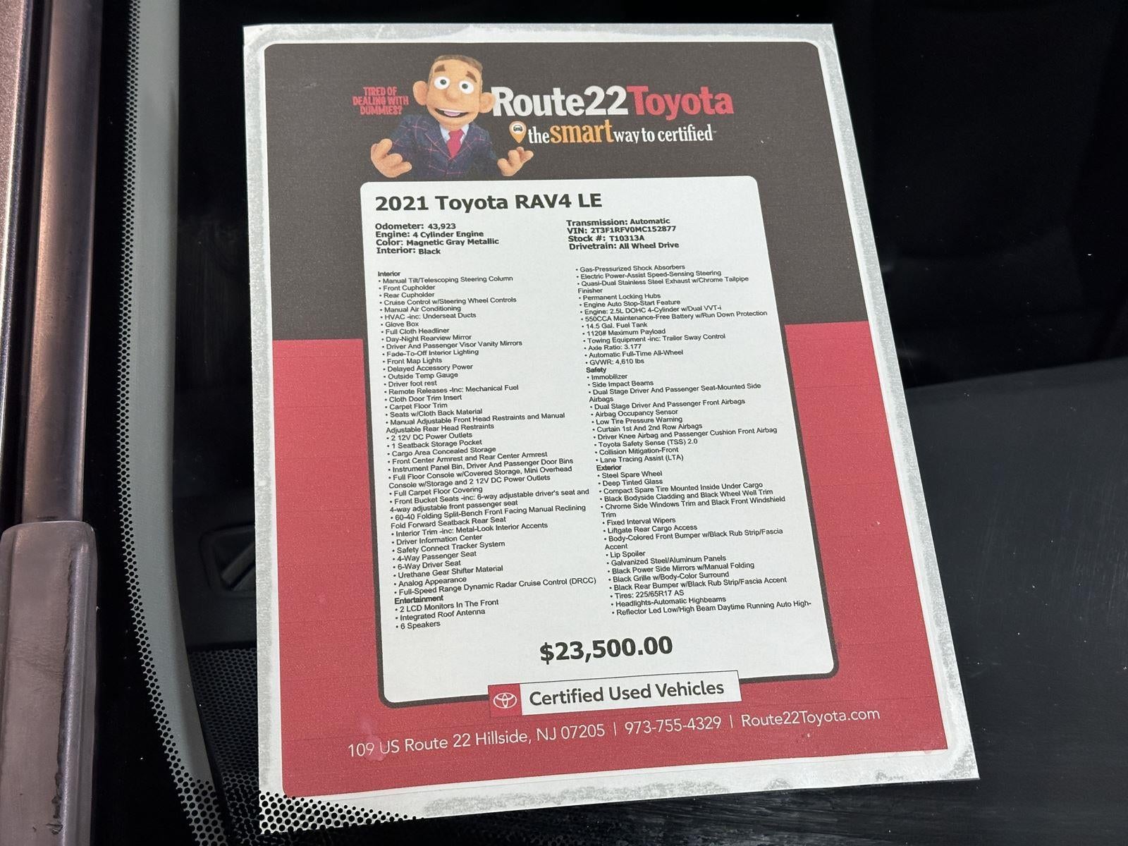 This beautiful 2021 Toyota RAV4 LE located at Route 22 Toyota has been thoroughly inspected by our service technicians, and fully reconditioned for immediate delivery.