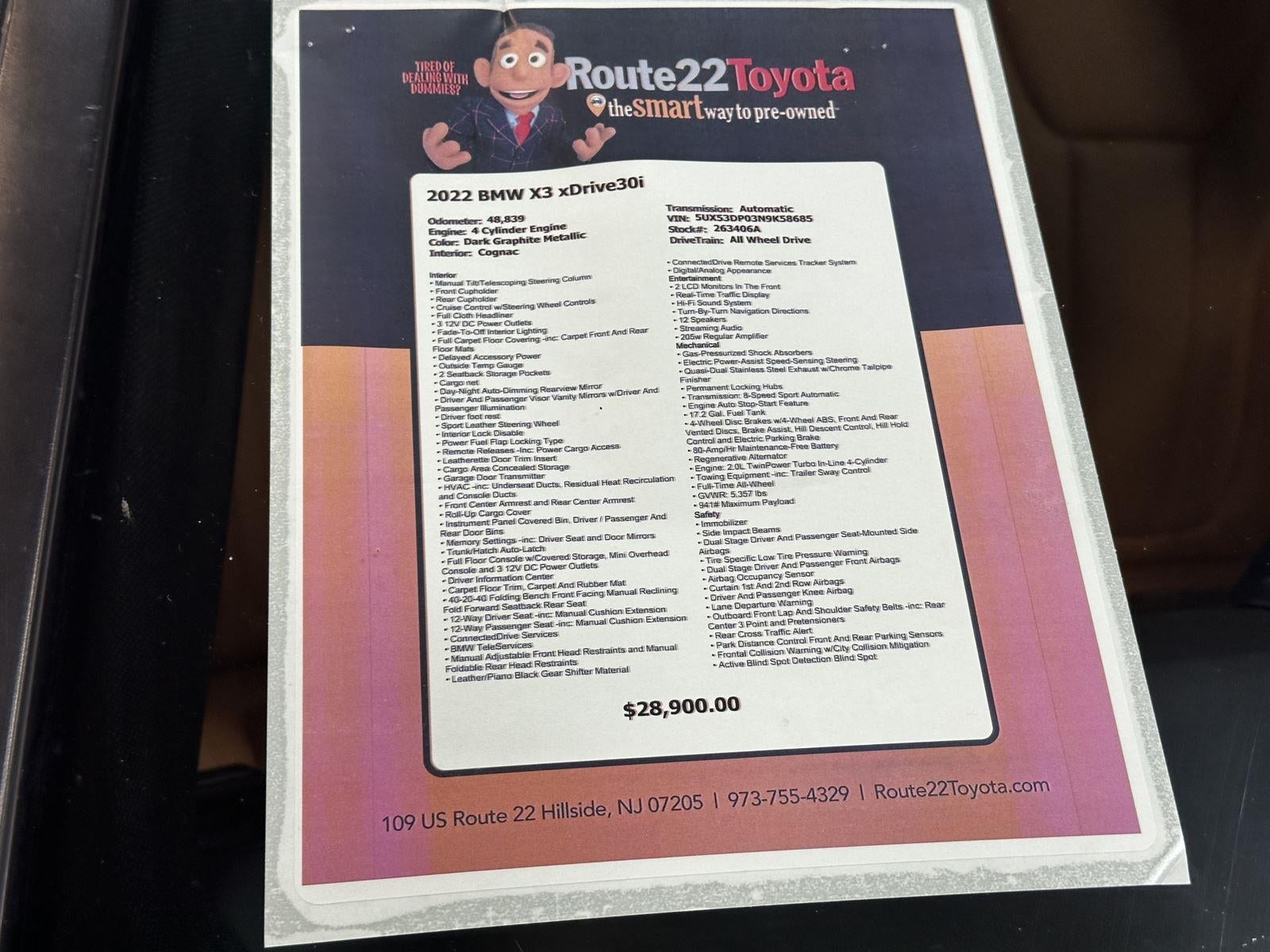 Our Dark Graphite Metallic 2022 BMW X3 xDrive30i has 48,920 miles with Cognac interior color. Stock Number 263406A
