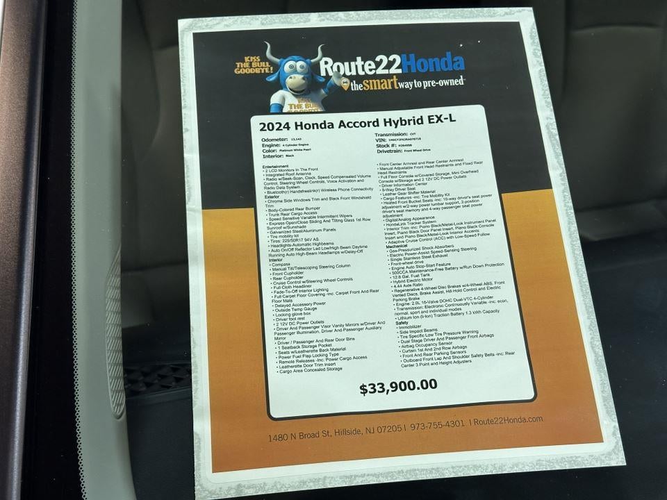 Our Platinum White Pearl 2024 Honda Accord Hybrid EX-L has 13,151 miles with Black interior color. Stock Number H26495R