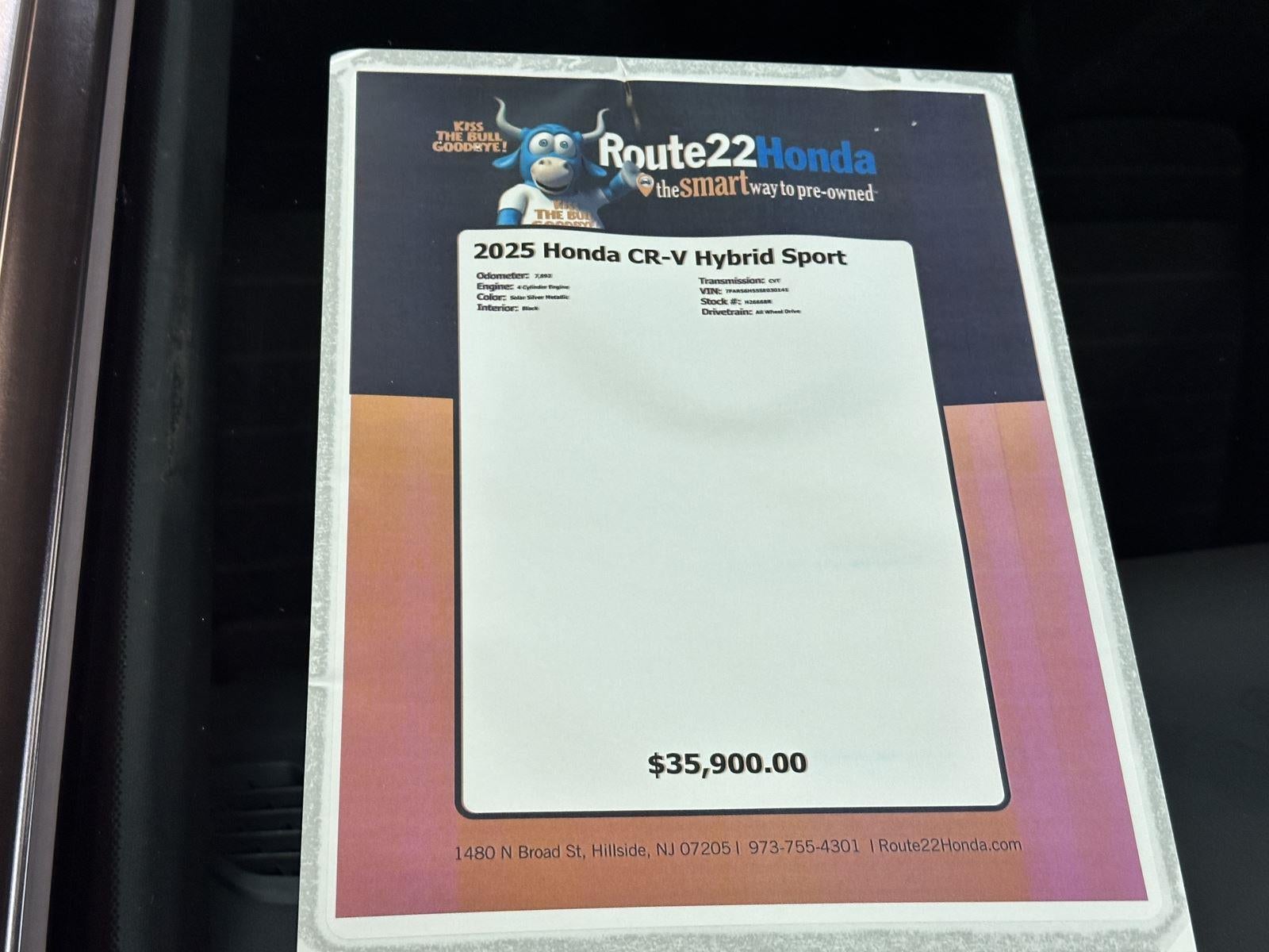 Our Solar Silver Metallic 2025 Honda CR-V Hybrid Sport has 7,894 miles with Black interior color. Stock Number H26668R